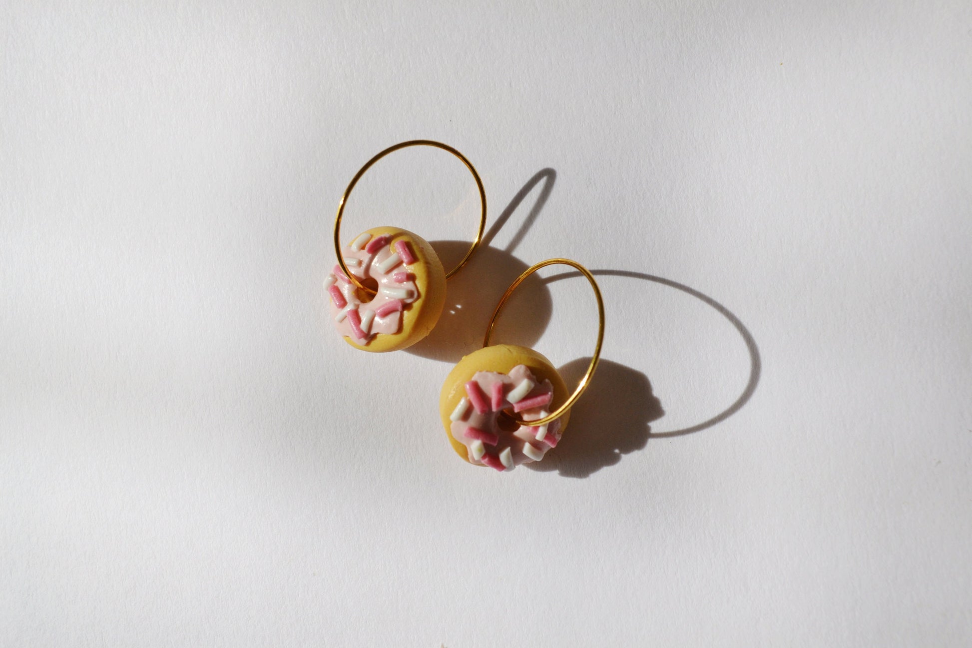Rainbow Sprinkle Donuts? Yes please! I've made the yummiest looking donuts out of polymer clay, so they're super lightweight and easy to wear, whilst also looking delicious. (Please don't eat them though!!)