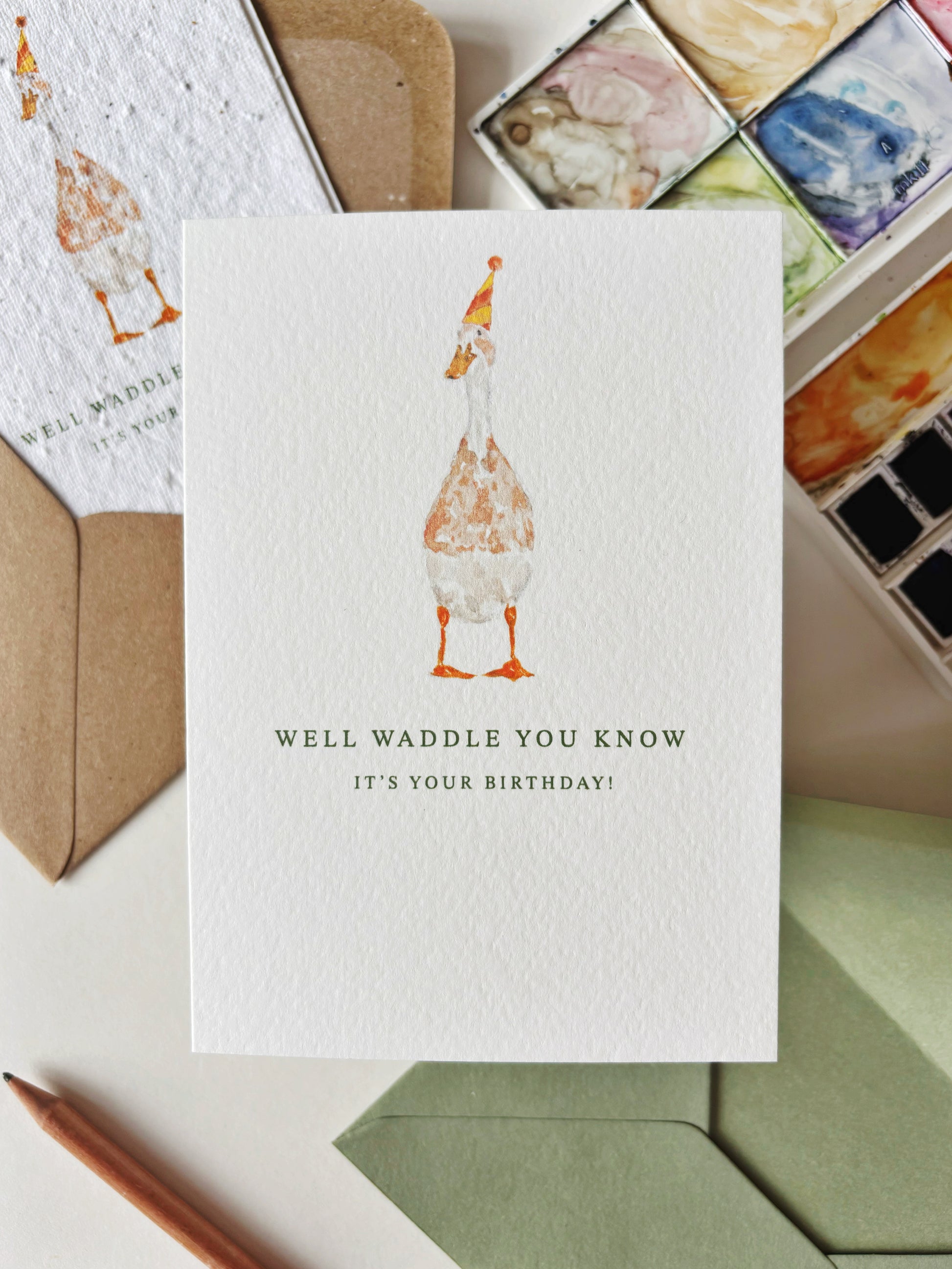 This card began as a watercolour painting by Ruthie, and was then printed onto textured Art Card using only vegan inks 🌱